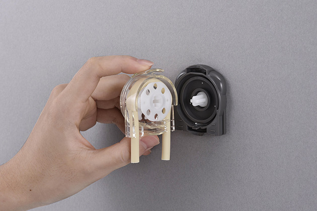 Le boîtier peut être facilement monté et démonté sans l'aide d'outils. Cela signifie que l'entretien, comme le remplacement des tuyaux, peut également être effectué rapidement.